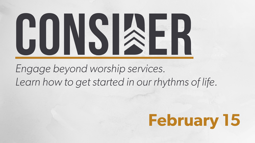 Attend our Consider class to learn how you can engage at Harvest Buffalo beyond just worship services. You'll have the opportunity to ask questions and interact with leaders. Consider is at 8:45am (prior to our morning service). Breakfast & childcare are provided for these events.